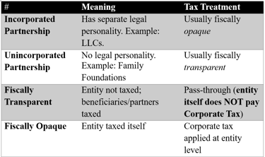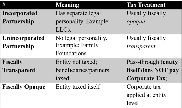 Quick Comparison of Incorporated and Unincorporated partnerships, Fiscally transparent and Fiscally Opaque: